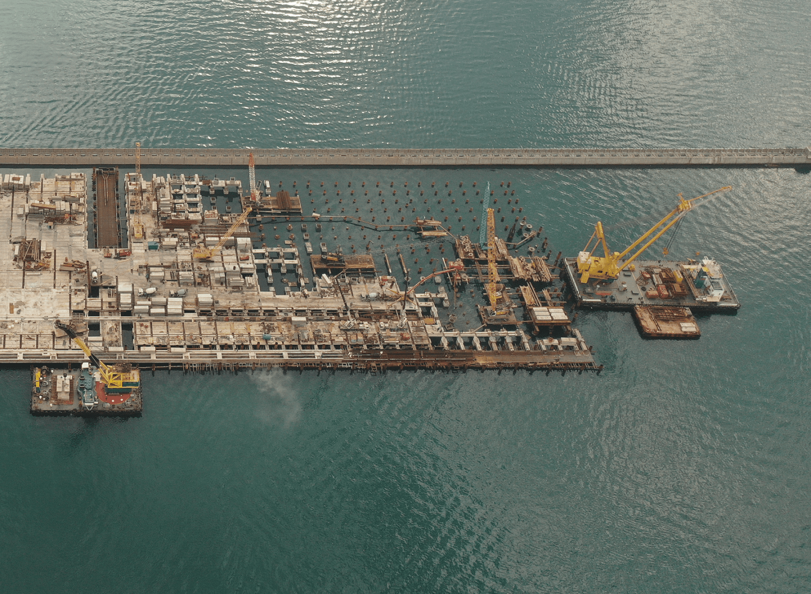 The construction of piers involves building structures extending into bodies of water to facilitate docking, loading, and unloading of vessels. Here's a brief outline of the process: Design and Planning: Piers are designed based on the intended use, water depth, tidal variations, and environmental factors. The design phase includes determining the size, shape, and materials for construction. Foundation Preparation: Before construction begins, the seabed is surveyed and prepared to ensure stability. This may involve dredging, driving piles, or constructing underwater foundations. Superstructure Construction: Piers are built using various materials such as concrete, steel, or timber. Construction techniques may include casting concrete, welding steel beams, or assembling prefabricated sections. Deck Installation: The pier deck is constructed to provide a stable surface for pedestrian and vehicular traffic. This may involve pouring concrete, laying timber decking, or installing precast panels. Utility Installation: Utilities such as lighting, water, electricity, and communication systems are installed to support pier operations and ensure safety and convenience for users. Safety Features: Safety measures such as railings, ladders, and life-saving equipment are incorporated into pier design to protect users and prevent accidents. Environmental Considerations: Environmental impact assessments are conducted to minimize disruption to marine ecosystems and comply with regulatory requirements for coastal development.